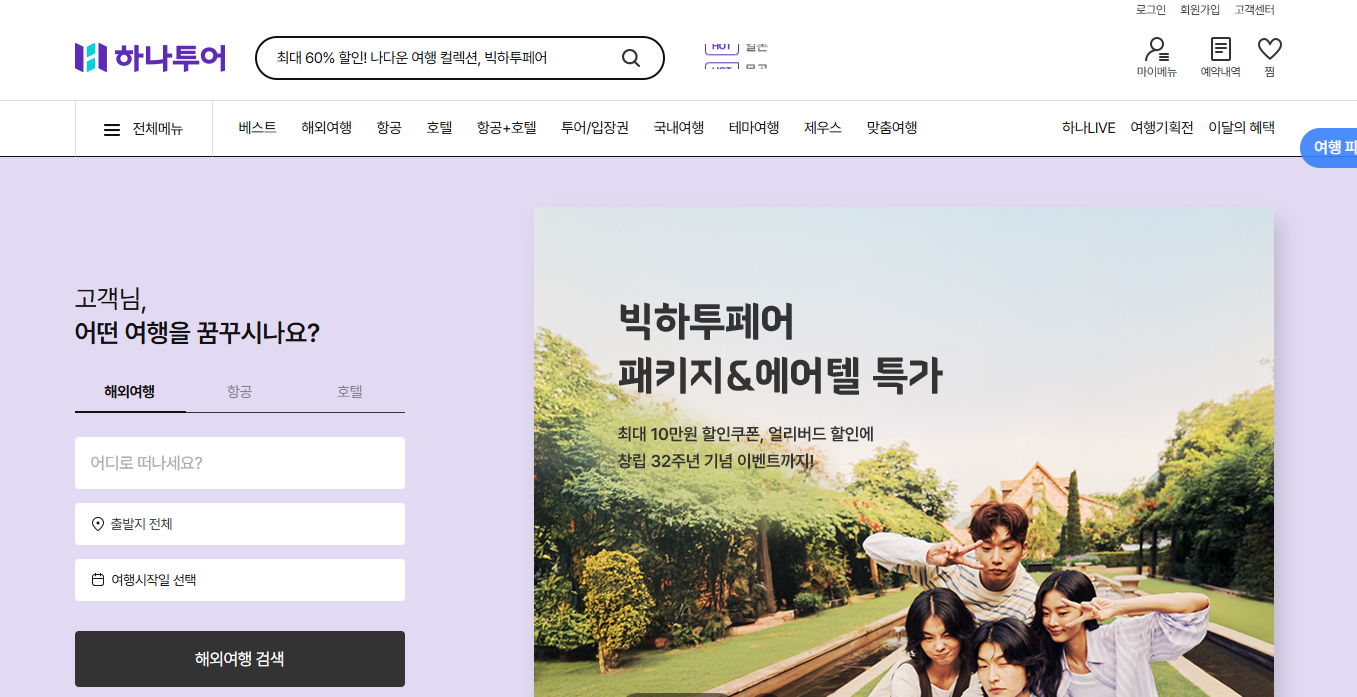 1등 여행사 하나투어! 전세계 패키지 여행, 항공권, 호텔, 자유여행 등 실시간 예약