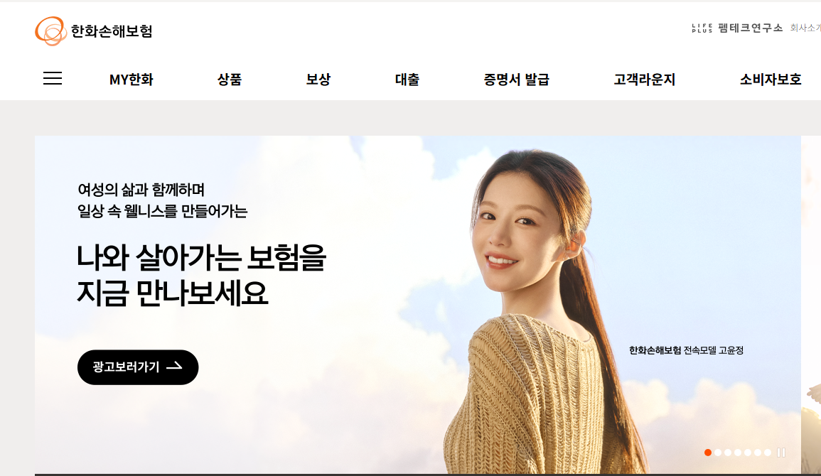 한화손해보험은 상해 및 질병 등의 위험에 대비한 최적의 상품 포트폴리오와 서비스를 갖춘 국내 대표 손해보험사입니다. 고객가치 중심의 경영을 실행하며, 장기보험·자동차보험·화재보험 등 다양한 보험 상품을 제공하고 있습니다. 한화손해보험은 "행복한 내일을 향한 당신의 꿈을 함께 이루어 간다"는 비전 아래 고객의 니즈와 시장 변화에 맞춘 서비스를 지속적으로 개발하고 있습니다.